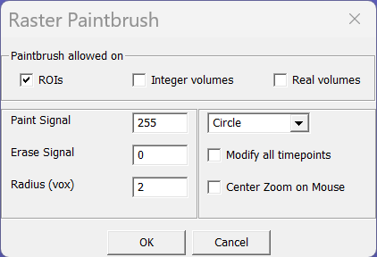 Paintbrush allowed on ROIs/Integer volumes/Real volumes – The three checkboxes